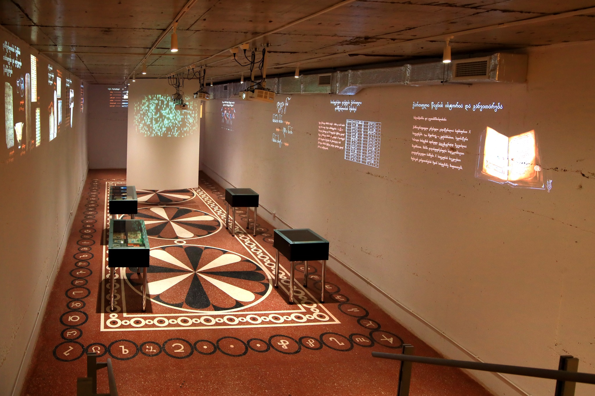 გამოფენის პარალელურად დარბაზში სამგანზომილებიან (3D) ფორმატში წარმოდგენილი იყო ქართული დამწერლობის განვითარების გზა – უძველესი დროიდან თანამედროვე ეპოქამდე ყურადღებას იპყრობდა დარბაზის დიზაინიც. ეროვნული ბიბლიოთეკის განახლებული სივრცის იატაკის მოზაიკა ქუთაისის ბაგრატის ტაძრის იატაკის მოზაიკას იმეორებს. დარბაზს ასევე აქვს მოჩუქურთმებული ხის კარი ვახტანგ VI-ისა და ანთიმოზ ივერიელის გამოსახულებებით.