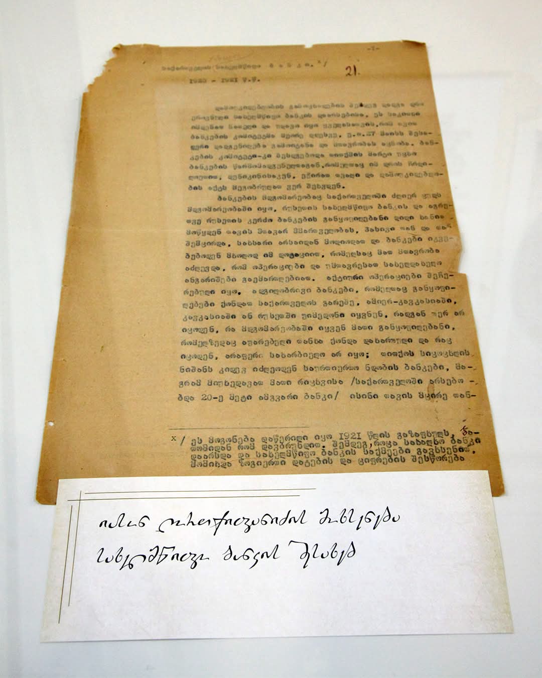 ,,დამთვალიერებლებს საშუალება ჰქონდათ, საქართველოს სახელმწიფო ბანკისა და საქართველოს დემოკრატიული რესპუბლიკის საფინანსო და ეკონომიკური ცხოვრების შესახებ ფულის მუზეუმში დაცულ საარქივო მასალას გასცნობოდნენ. გამოფენა 18 მაისს გაიხსნა და 25 მაისის ჩათვლით გაგრძელდა.