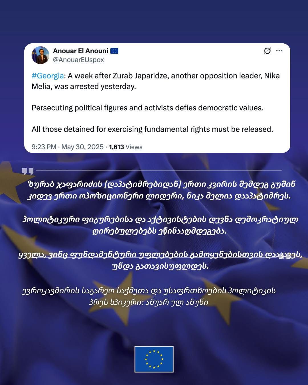 „2021 წელსაც, ნიკა მელიას დაკავების შემდეგ, ასე ესხმოდა თავს ბრიუსელი კანონის უზენაესობას და დემოკრატიას.