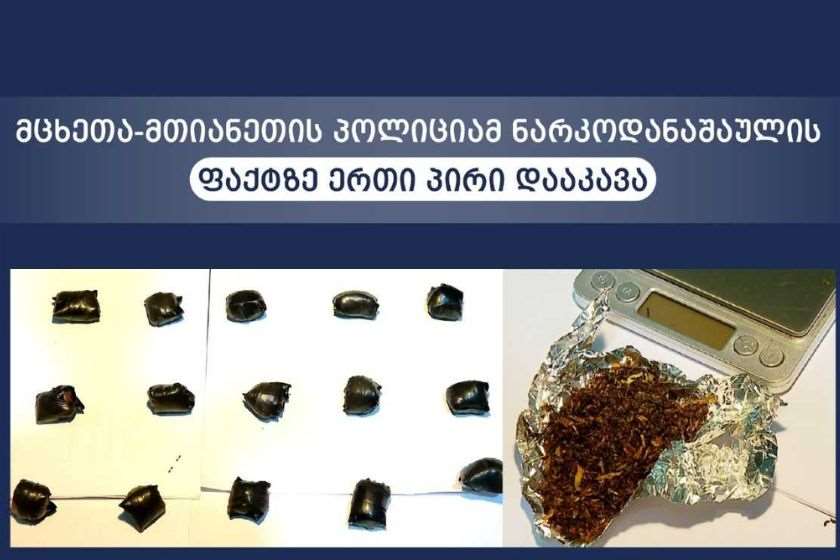 მცხეთა-მთიანეთის პოლიციამ ნარკოდანაშაულის, ოჯახში ძალადობისა და მუქარის ბრალდებით თ.ფ. დააკავა, – ინფორმაციას შსს ავრცელებს.