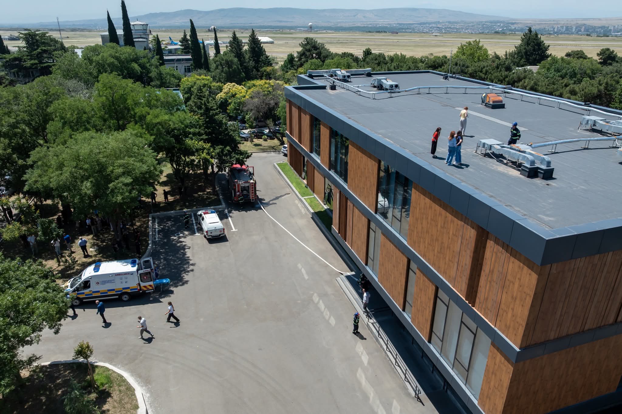 რის შემდეგაც გაიმართა სიმულაციური პრაქტიკული სწავლება, სადაც ჩართული იყო სახანძრო ეკიპაჟი, სასწრაფო დახმარების მანქანები და საპატრულო ეკიპაჟი.