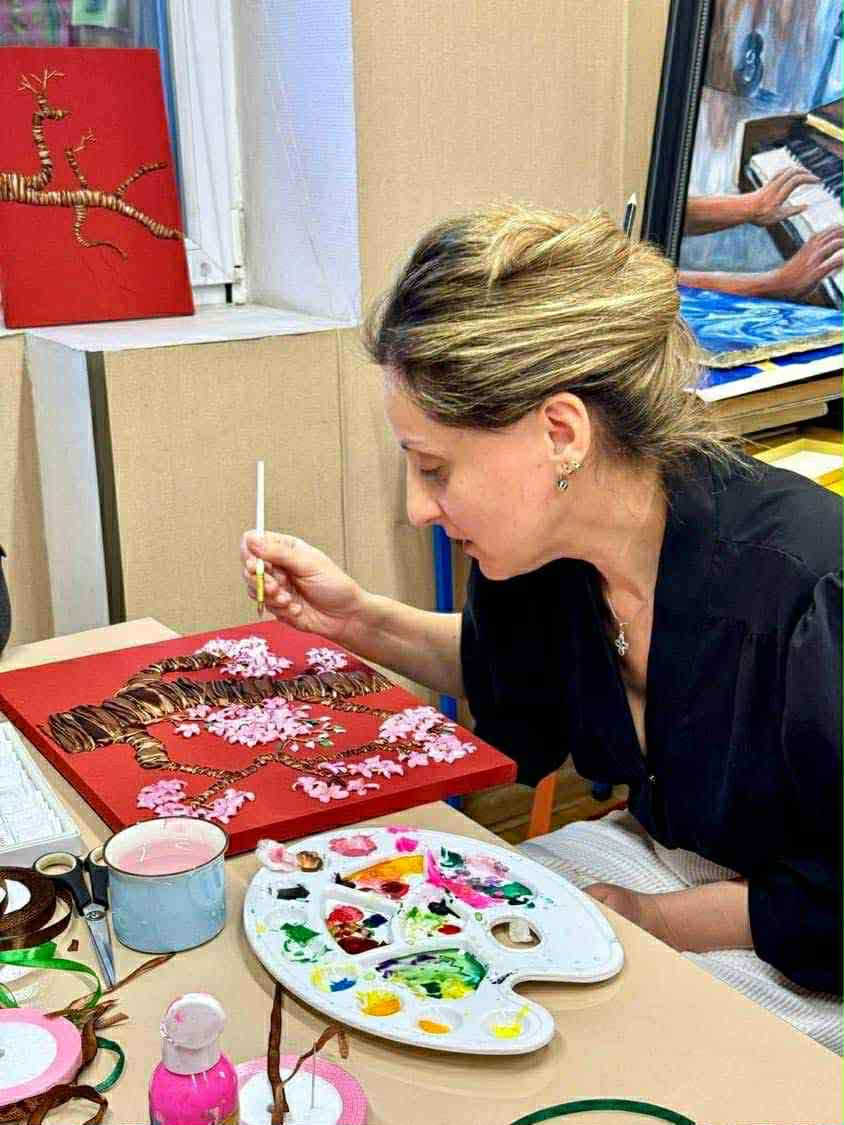 – ნაქარგები ლენტებით შესრულებული სხვადასხვა ტექნიკით ძალიან მომწონს და საღებავებს რომ ვიყენებ, რთული კომპოზიციებს შესაქმნელად, სამი კვირაა საჭირო. მიხარია, რომ ჩემი ნამუშევრები მოსწონთ, რადგან ქება სტიმულს მაძლევს, რომ კიდევ ბევრი ვიმუშაო.