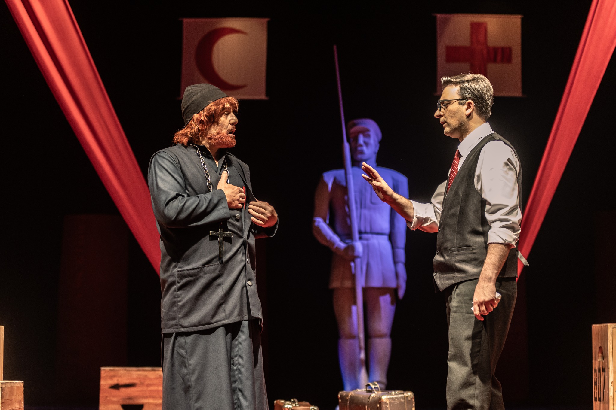 სიკეთისა და ბოროტების სახით ერთმანეთს უპირისპირდებიან ახალგაზრდა მუსლიმი მაშადი ჰასანი (მეტსახელად ლამბალო) და გაიძვერა და ფლიდი ასურელი მართლმადიდებელი ყაშა ლაზარე“, – წერია თეატრის მიერ გავრცელებულ ინფორმაციაში.