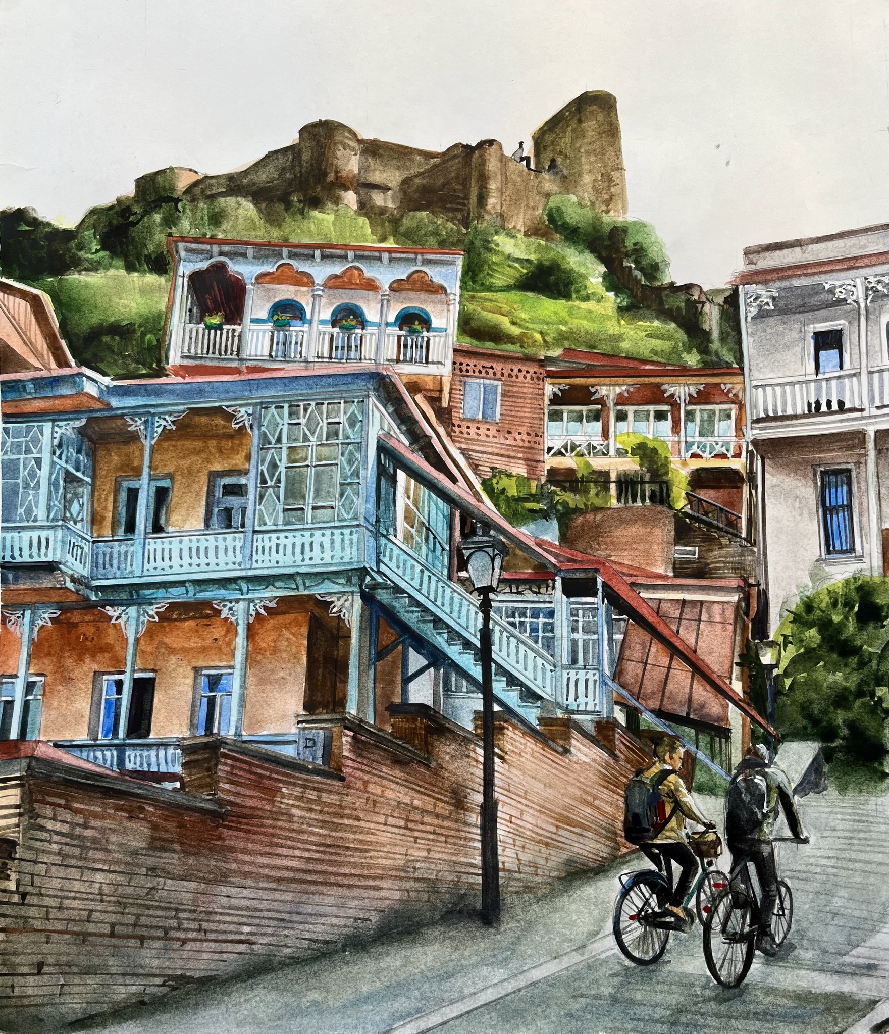 – მე ზოგადად მსიამოვნებს არქიტექტურული ნახატების შექმნა, თანაც აკვარელში. ასევე ფიგურატიული კომპოზიციები. საინტერესო ის არის, ჩემი დამოკიდებულება როგორია ამ ორის მიმართ. მე სახლს, მაგალითად, ისე ვხატავ, როგორც ადამიანის პორტრეტს, ვცდილობ, მისი ხასიათი ვაჩვენო, გამომეტყველება, ისტორია. ადამიანის სხეულს კი ისე ვაგებ და ვაშენებ, როგორც შენობა- ნაგებობას – თავის სიმძიმის ცენტრით, წონასწორობით. ვგიჟდები ხელების და ტერფების კონსტრუქციაზე, ეს ძალიან ელეგანტური არქიტექტურაა. ნახატებშიც შეიძლება ხშირად სახე არ გამოვაჩინო და მხოლოდ ხელების მეშვეობით გადმოვცე სათქმელი, დრამა, ისტორია. ხელები იმდენ რამეს გადმოსცემენ, იდეალურია და საკმარისი.