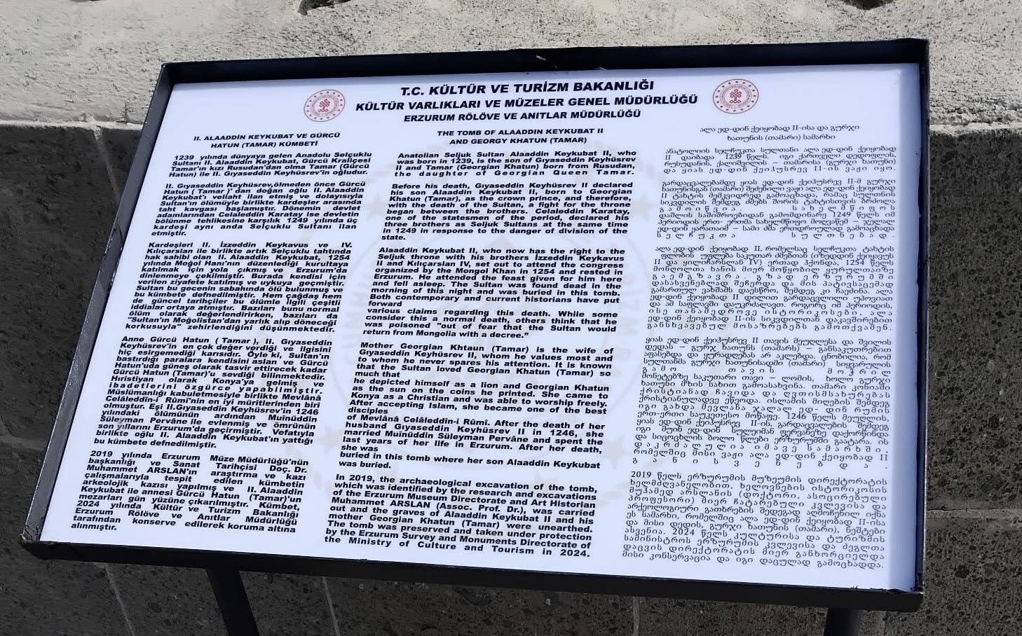 „თურქულმა მხარემ დადებული პირობა შეასრულა და დიდი თამარ მეფის შვილიშვილის, „გურჯი ხათუნის” საფლავის რეკონსტრუქცია პრაქტიკულად დასრულდა, რასაც წინ უძღოდა, ჯერ კიდევ ჩემი თურქეთში მუშაობის დროს, ერზერუმში აღმოჩენილ საძვალეში არსებული ნეშტების დნმ-ის ანალიზის მოთხოვნა. აღნიშნულის შედეგად, დადასტურდა, რომ იქ აღმოჩენილი სარკოფაგები სწორედ გურჯი ხათუნსა და მის ვაჟს სულთან ალაედდინ ქეიქუბად II-ს ეკუთვნით.