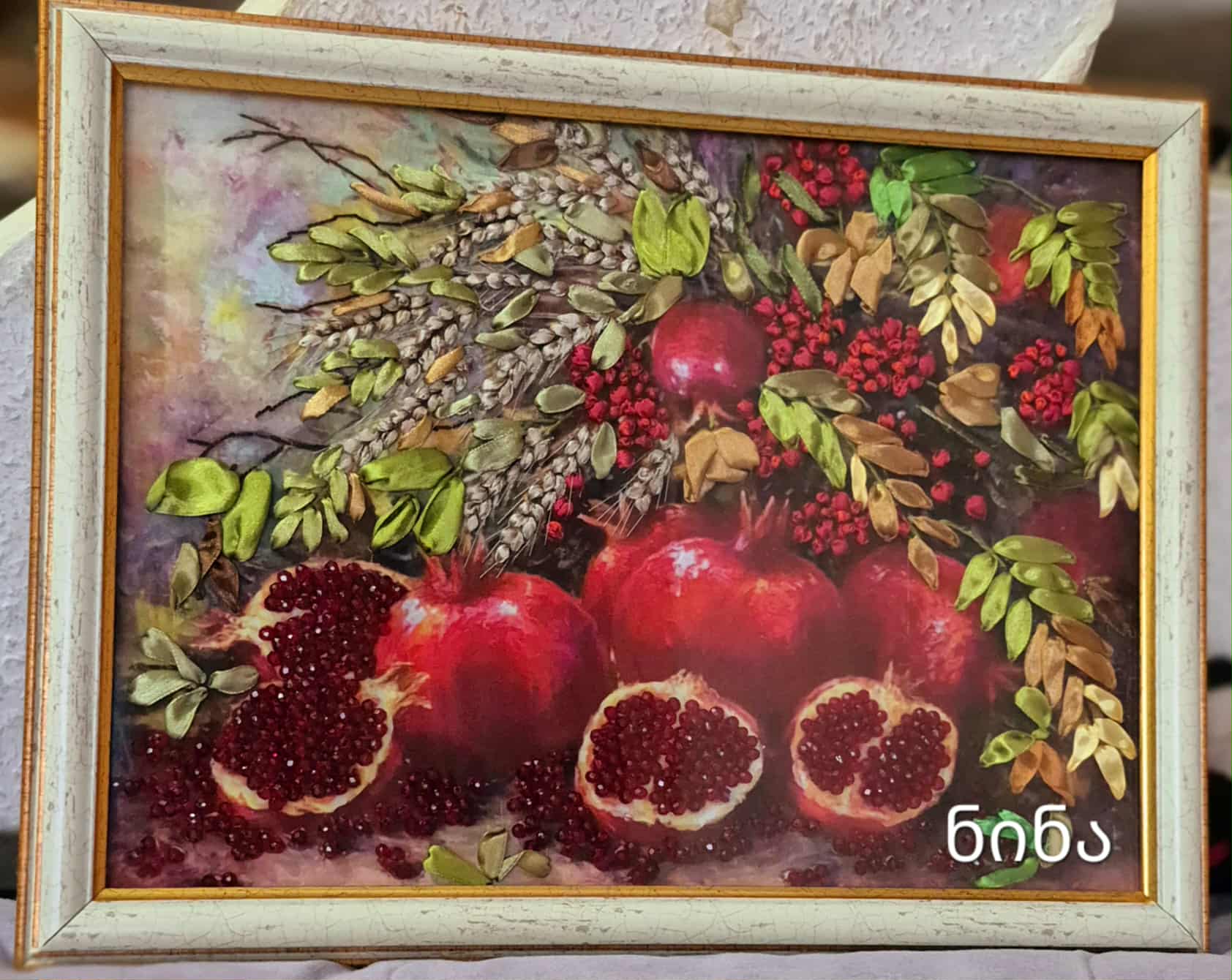 – ბროწეულები გამრავლების, ბარაქის სიმბოლოა. მომწონს ბროწეულების სხვადასხვა რაკურსით კომბინაციაში ქარგვა. საოცარი შეგრძნებაა კრისტალებთან მუშაობა.