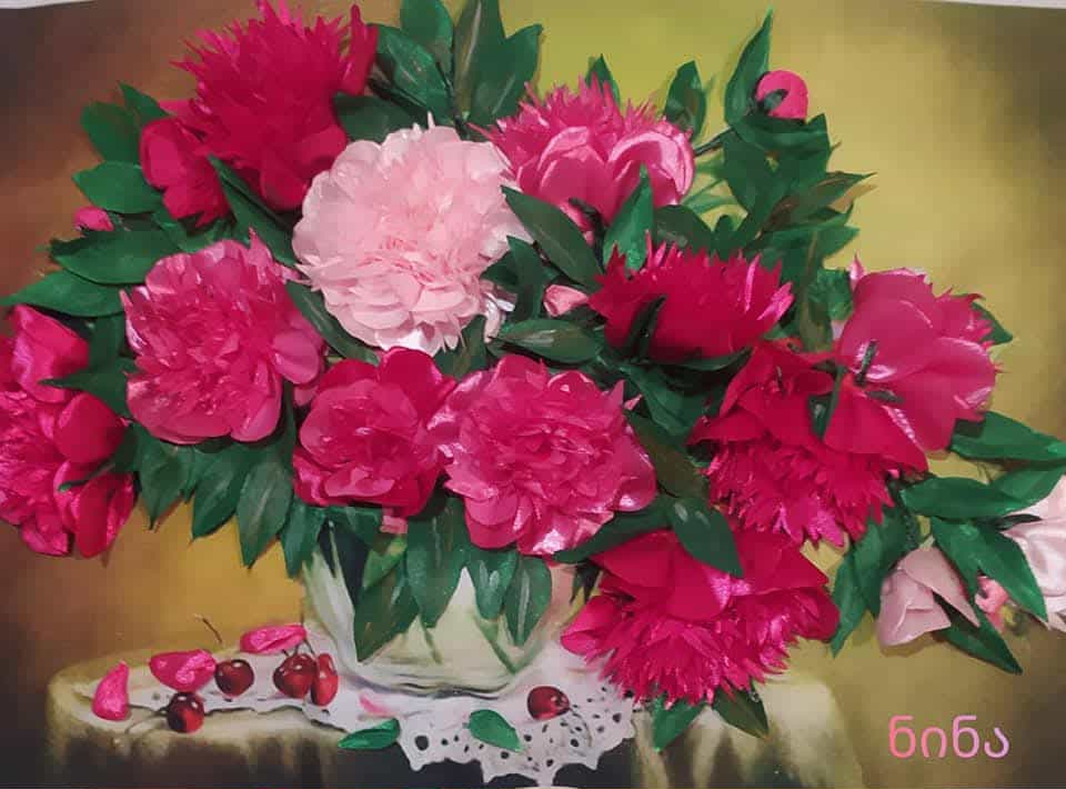 – ბევრი საინტერესო ისტორია მაქვს. მოგეხსენებათ, ვასწავლი ლენტებით ქარგვას. უამრავი მოსწავლე წარმატებით აგრძელებს ამ ხელოვნებას. მოვინდომე ერთი სურათის მოქარგვა (არ დავასახელებ, რომლის). როდესაც ნახავს ამ ინტერვიუს, მიხვდება თვითონ.დავურეკე ჩემს მოსწავლეს და ვკითხე, როგორ უნდა მომექარგა. ჯერ გაოცდა, მერე მკითხა, სერიოზულად თუ ვეკითხებოდი. პასუხი ასეთი იყო – შენ შეძლებ! მართლაც, შევძელი.
