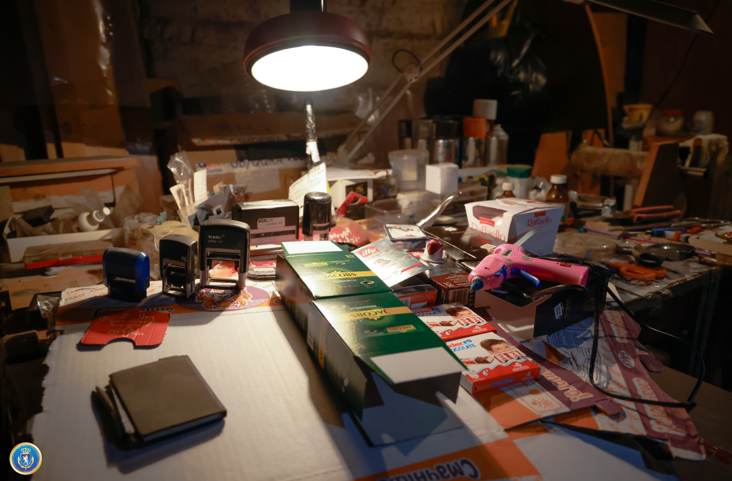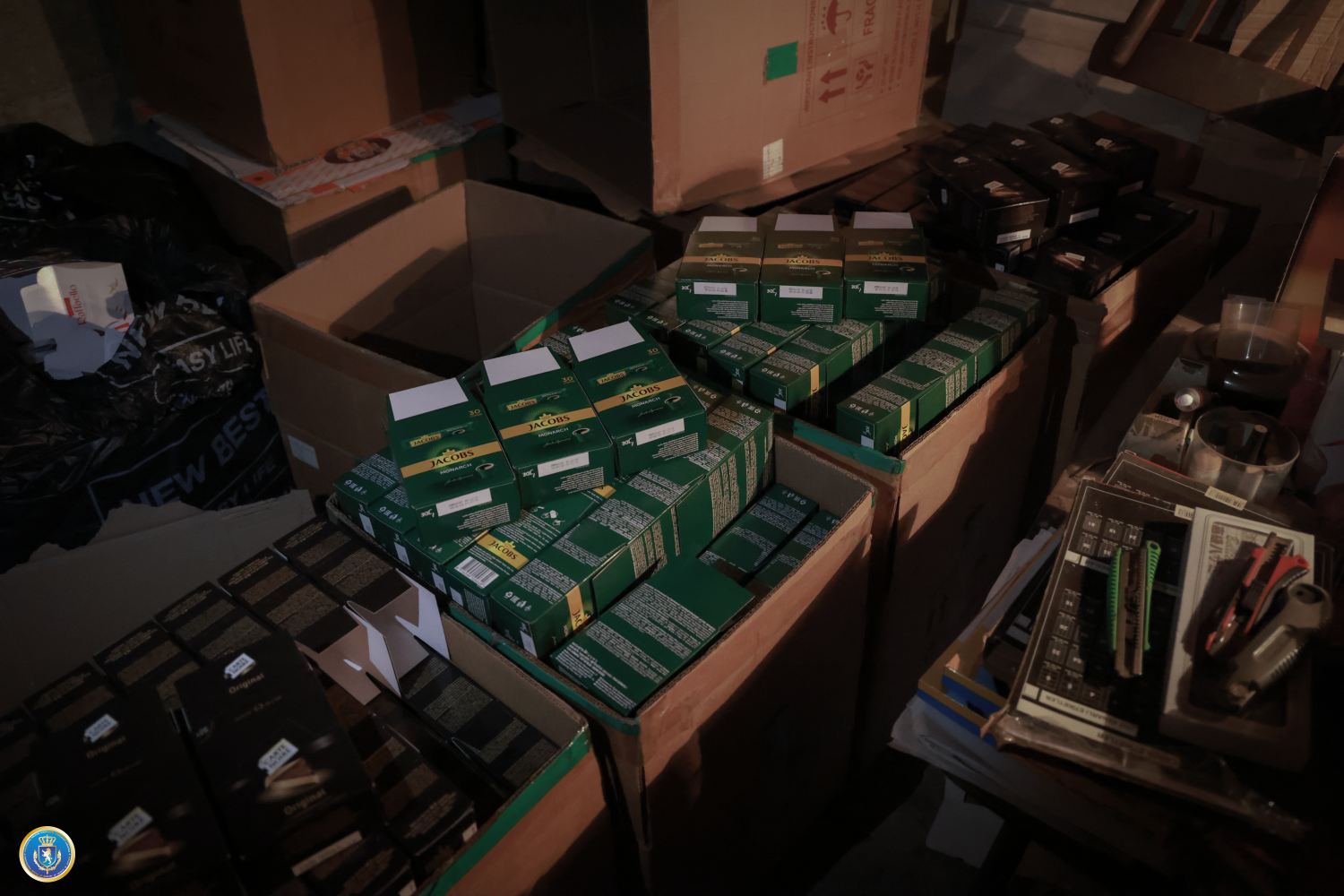 ასევე, ჩხრეკის შედეგად, აღმოჩენილი და ამოღებული იქნა ყავა „Jacobs Monarch”-ის და „Carte Noire“-ის სასაქონლო ნიშნით უკანონო ნიშანდებული ლენტები, ვადაგასული ტკბილეული „Kinder Schokolade”, “Jacobs Monarch”-ის და „Raffaello”-ს ყუთები, ყალიბები, ბეჭდები და ზემოხსენებული პროდუქციის შეფუთვისათვის და წარმოებისათვის განკუთვნილი ტექნიკური დანადგარები.