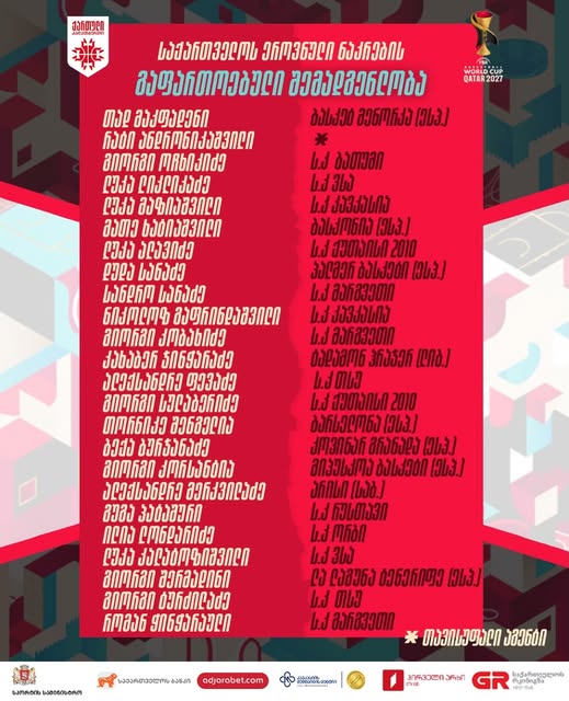 მათივე ცნობით, გაფართოებულ შემადგენლობაში ნაკრების გამოცდილ ლიდერებთან ერთად ახალი სახეებიცაა.