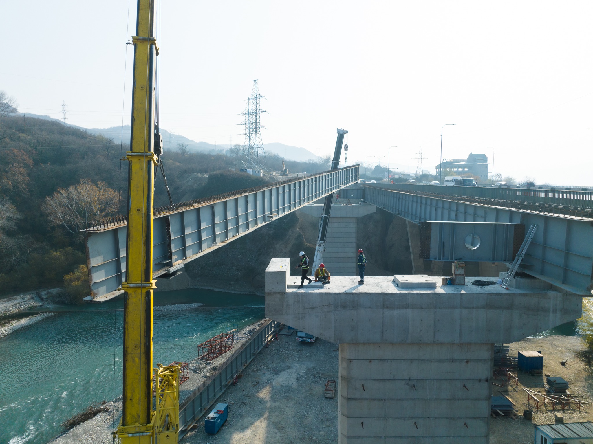 ინფრასტრუქტურის სამინისტროს ინფორმაციით, ამ ეტაპზე დასრულებულია ხიდის 4 ბურჯის მშენებლობა, მეხუთე ბურჯი დასრულების ფაზაშია. პარალელურად, მიმდინარეობს 73-მეტრიანი ლითონის კოჭების მონტაჟი. სამუშაოები ინტენსიურად მიმდინარეობს.