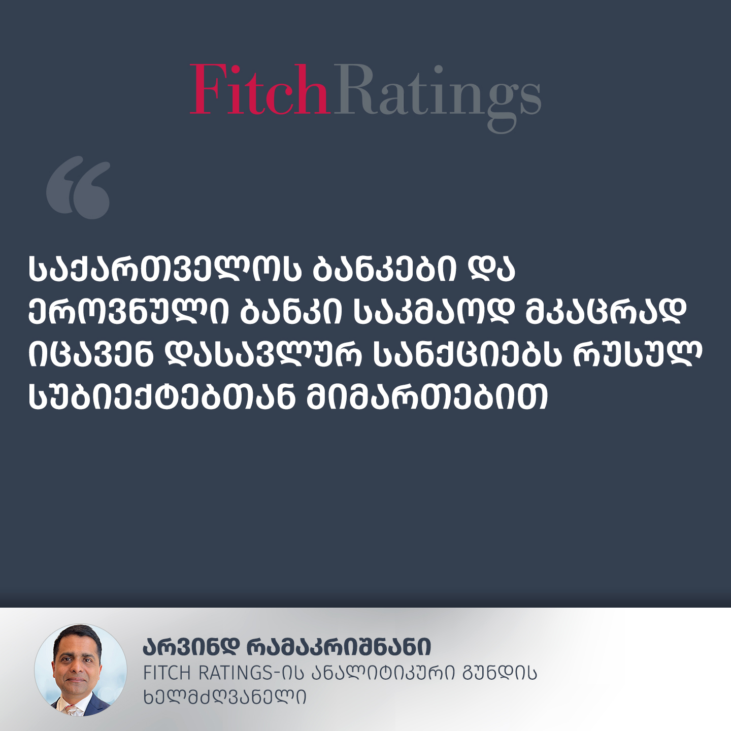 „საქართველოსთვის, ისევე როგორც რეგიონის თუ სხვა ქვეყნებისთვის, ძალიან მნიშვნელოვანია ევროპული, ამერიკული და ბრიტანული სანქციების დაცვა, რადგან პირველ რიგში, სანქციები შეიძლება შეეხოს საბანკო სექტორს და მეორეც, სანქციებმა შეიძლება შეამციროს ქვეყანაში კაპიტალის შემოდინება“, – აცხადებს Fitch Ratings-ის ანალიტიკური გუნდის ხელმძღვანელი, არვინდ რამაკრიშნანი.
