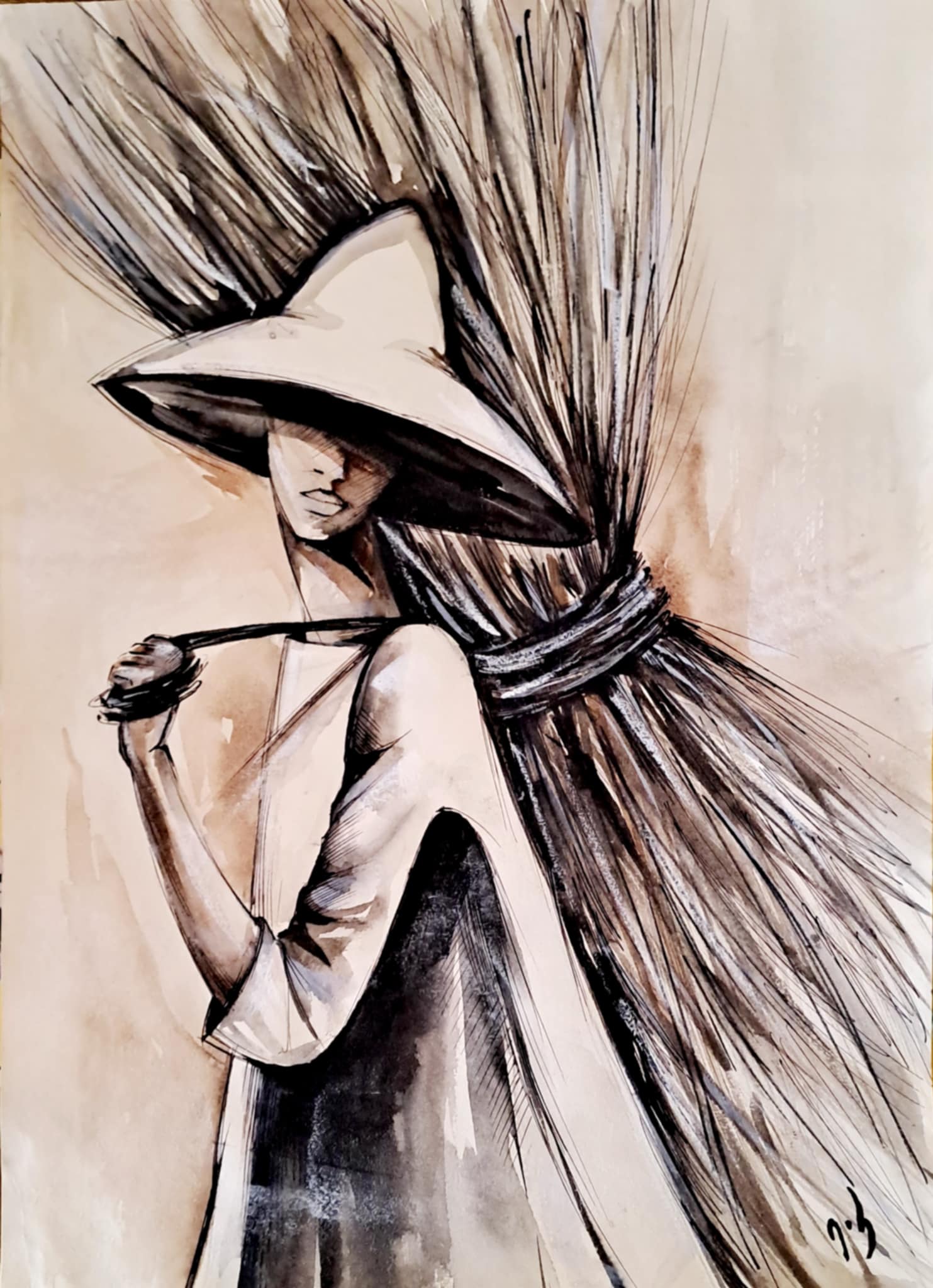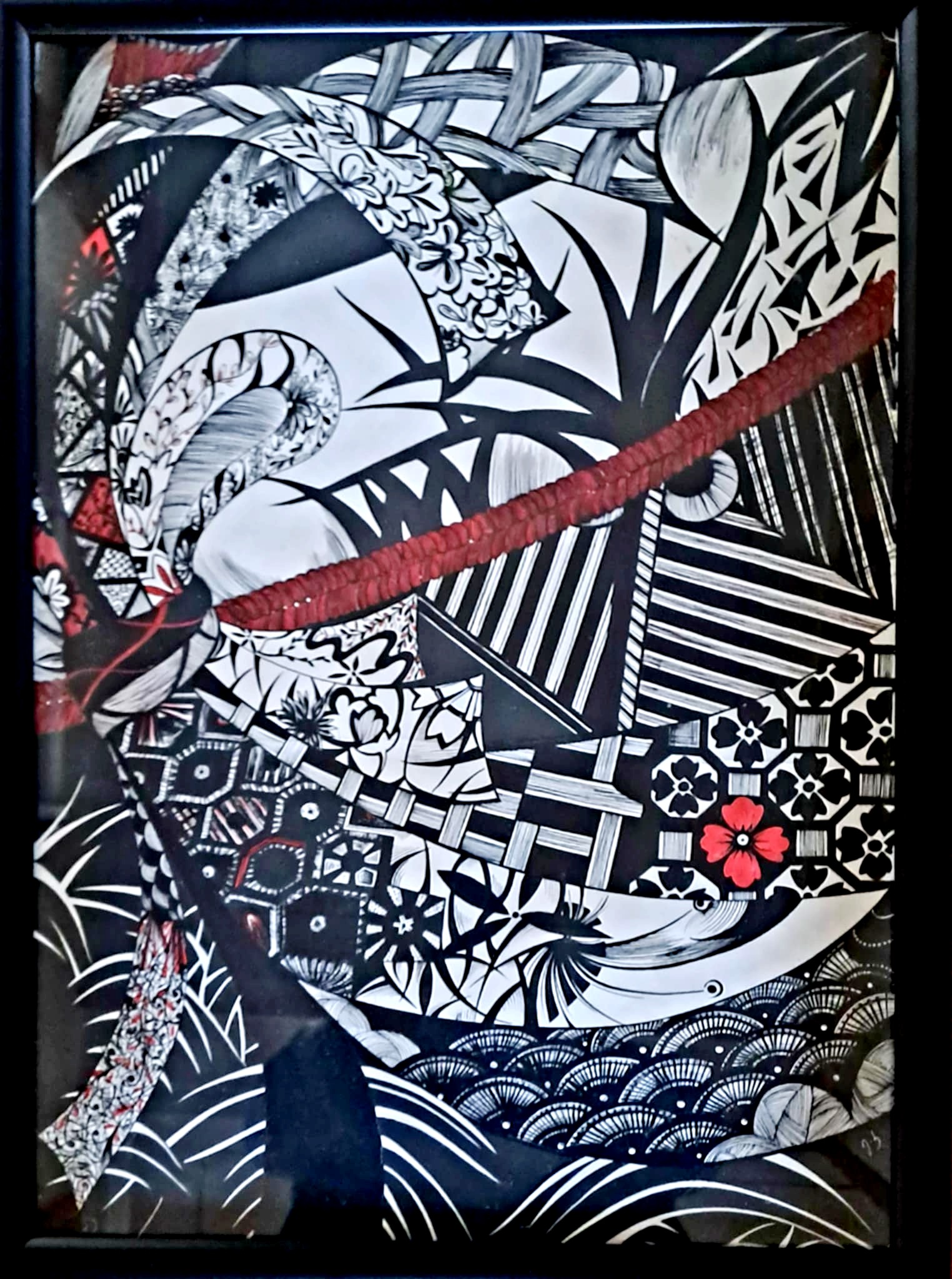 – საინტერესო ისტორია ასე უცებ ერთი გამახსენდა – ზამთარია, უშუქობა, დევს ძველებური 70-იანი წლების კალენდარი, დიდი, გადასაფურცლი, სადაც იაპონელი ქალები დგანან ნაციონალურ კოსტიუმებში, და დავიწყე ამ ორნამენტების ამოღება ჩემებურად, ისე ვხატე, არც გამიგია, დრო როგორ გავიდა, ტუშით, შავ-თეთრში. და ერთი წითელი ყვავილი გავაკეთე… ბოლოს მივხვდი, რატომ – ჩუტყვავილა მქონდა და ეტყობა შინაგანი მდგომარეობა გადმოვეცი.