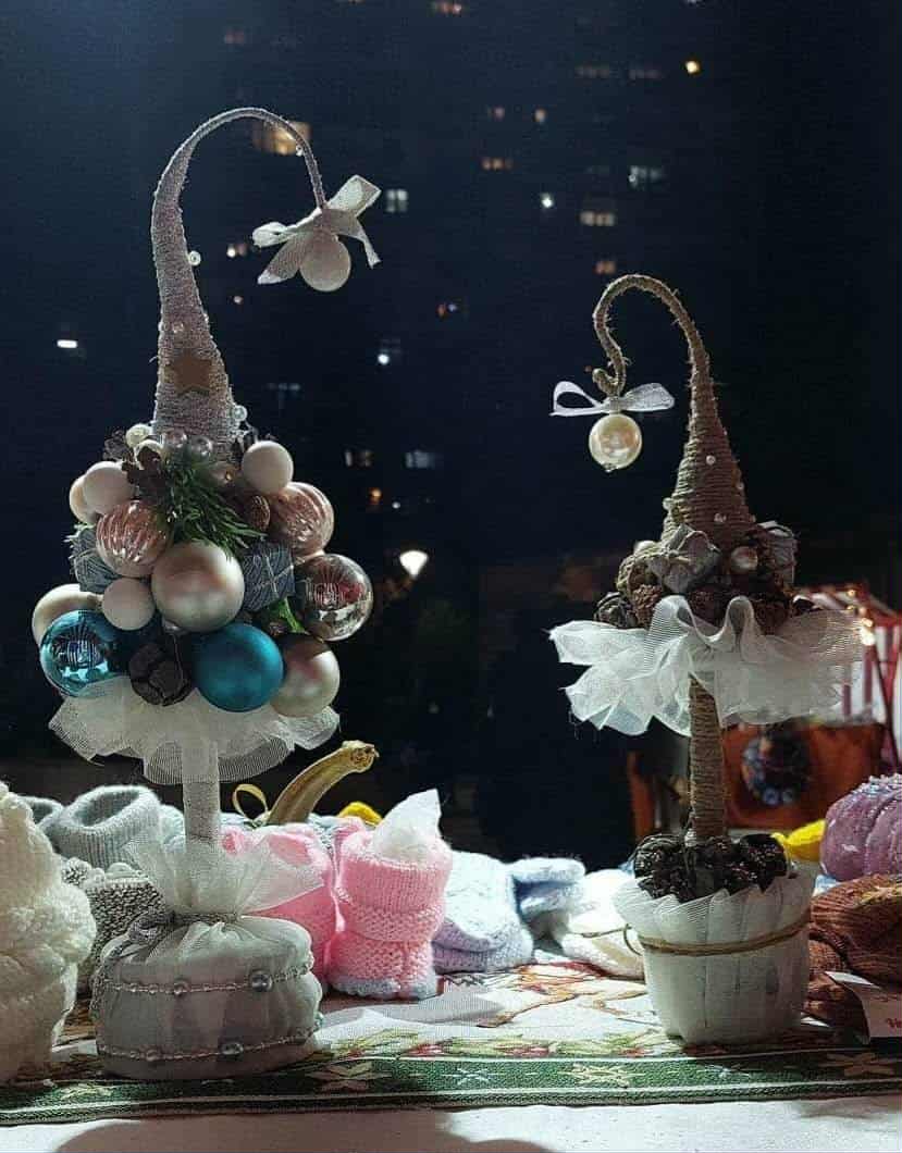 – საახალწლო თემა ამოუწურავია. მაქვს ნაძვის ხეები, ნაძვის გასაფორმებელი სათამაშო-ბურთულები, სოკოები, გულები, ვარსკვლავები. მაქვს მოქარგული საახალწლო წინდა, ბარაქის გოგრები, მოქსოვილი ნაძვის ხე.