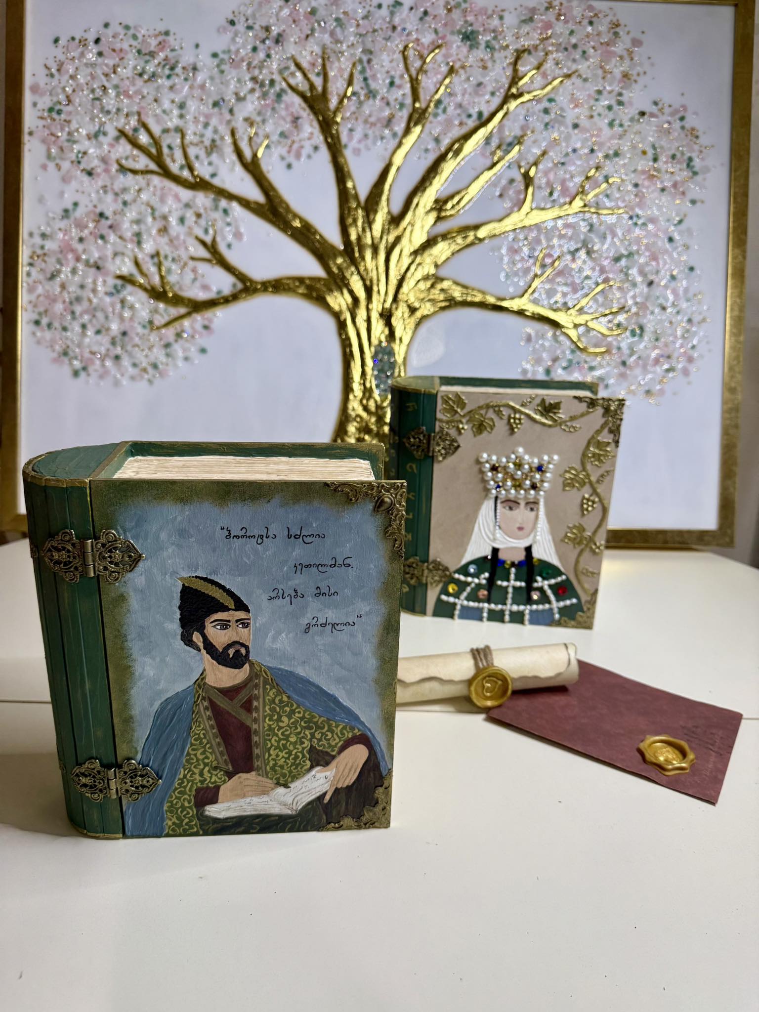 ჯერ ვინტაჟური ზარდახშებით დავიწყე. მერე წიგნის ფორმის სკივრი შევქმენი და ერთ საღამოს დამებადა იდეა, რომ თამარ მეფის გამოსახულებით წიგნის ფორმის სკივრი უნდა ყოფილიყო ჩემი სავიზიტო ბარათი.