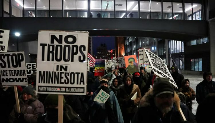 მომიტინგეები აპროტესტებდნენ იმიგრაციის კონტროლის სააგენტოს (ICE) მიერ განხორციელებულ დევნებს და დაკავებებს, ასევე პოლიტიკის მიმართ საზოგადოებაში გაზრდილ უკმაყოფილებას.