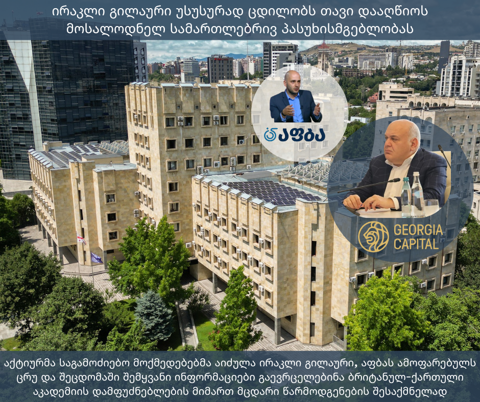 დღეს, როდესაც პოლიტიკური კონტექსტი შეცვლილია ქვეყანაში, გამომჟღავნებულია გრიგოლ ლილუაშვილისა და ოთარ ფარცხალაძის ქმედებები და მათ მიმართ სისხლის სამართლის საქმეების გამოძიება მიმდინარეობს, აქტიურად დაიწყო სისხლის სამართლის საქმის გამოძიება ფინანსთა სამინისტროს საგამოძიებო სამსახურმაც დამფუძნებლების იმ განცხადებებთან დაკავშირებით, რომლებშიც ირაკლი გილაური და მისი გუნდის სხვა წევრები ფიგურირებენ. სწორედ ეს არის, რაც ირაკლი გილაურსა და მასთან დაკავშირებულ პირებს აწუხებთ. ინტენსიურმა გამოძიებამ, აკადემიაში საგამოძიებო სამსახურის შესვლამ და აქტიურმა საგამოძიებო მოქმედებებმა აიძულა ირაკლი გილაური, აფბას ამოფარებულს საჯარო, ცრუ და შეცდომაში შემყვანი ინფორმაციები გაევრცელებინა საზოგადოებასა და სამიზნე ჯგუფებში, მათ შორის, სამართალდამცავ ორგანოებში, დამფუძნებლების მიმართ მცდარი წარმოდგენების შესაქმნელად. მუდამ ლობისტების მაძიებელ ირაკლი გილაურს, ალბათ ფინანსთა სამინისტროს საგამოძიებო სამსახური მიაჩნია ნათია ჯანაშიასა და დავით ცეცხლაძის ლობისტად, რაკი ასეთი შემართებით ცდილობს დამფუძნებლებზე აზრი შეაცვლევინოს მათ „ლობისტებს“, დაარწმუნოს იმაში, რომ თურმე ნათია ჯანაშია და დავით ცეცხლაძე ცრუობენ, ხოლო „საწყალი“ ინვესტორი, საქართველოს კაპიტალი, მსხვერპლია.