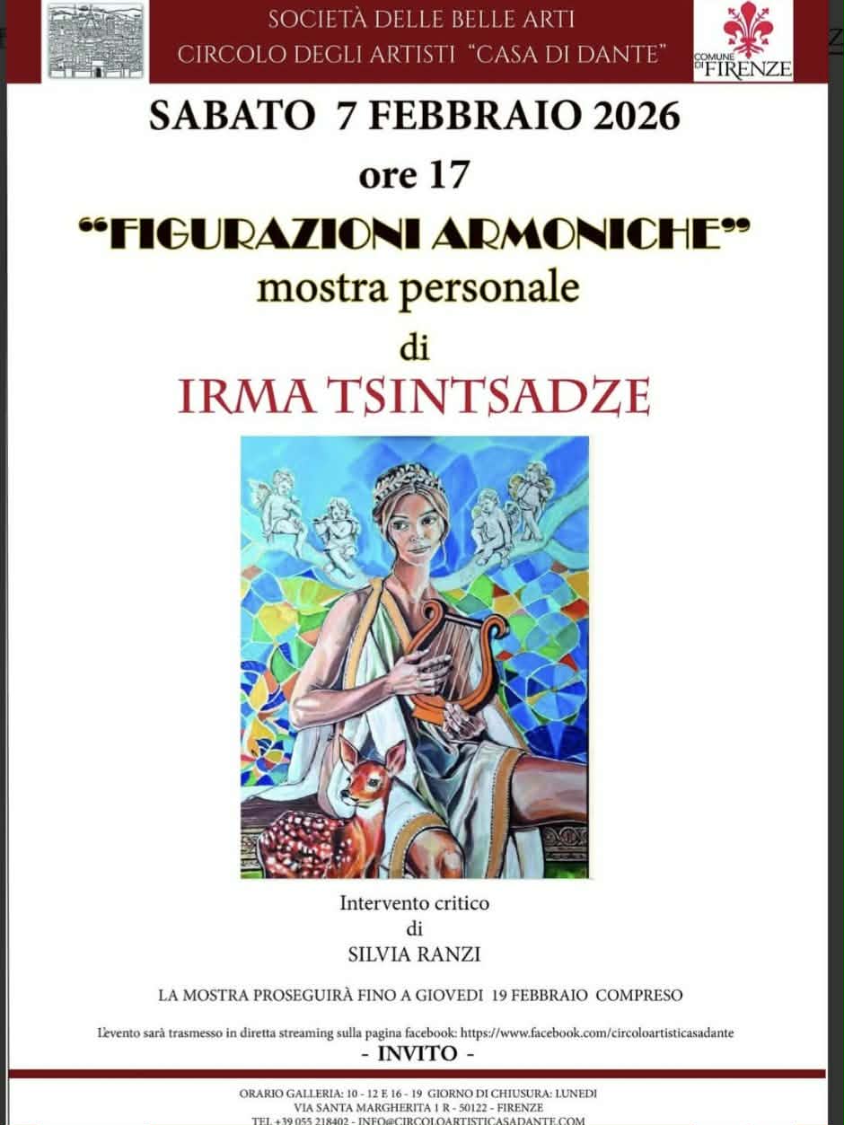 7 თებერვალს კი ფლორენციაში, „დანტეს სახლის“ გალერეაში გაიმართა მისი პერსონალური გამოფენა, სადაც 7 წლის განმავლობაში შექმნილი ნამუშევრები წარადგინა. – მხატვარ ირმა ცინცაძის პერსონა.