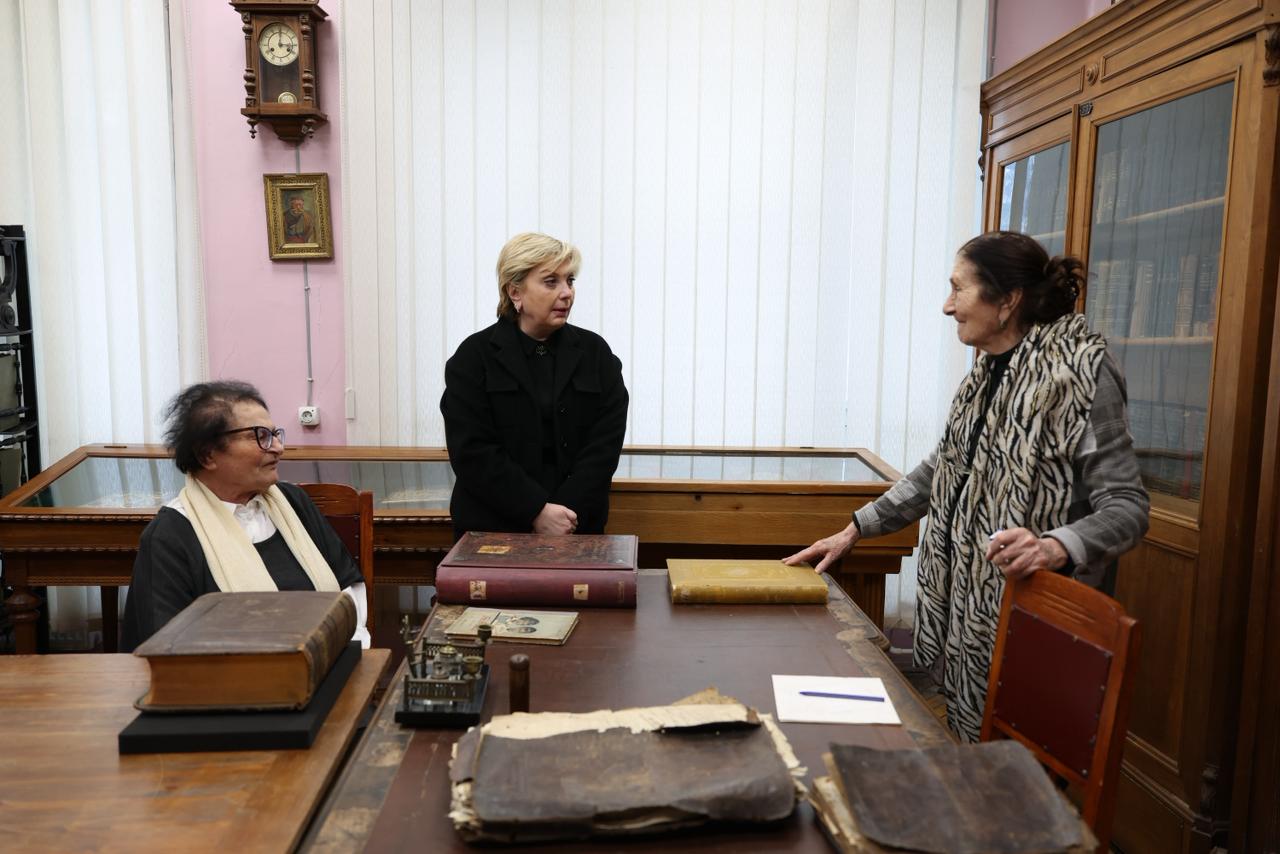 კულტურის სამინისტროს ინფორმაციით, მინისტრმა ხელნაწერთა ცენტრის დირექტორთან, ზაზა აბაშიძესთან ერთად დაათვალიერა საცავები, რესტავრაციისა და დიგიტალიზაციის ლაბორატორიები, ბიბლიოთეკა და მემორიალური მუზეუმ-კაბინეტი.