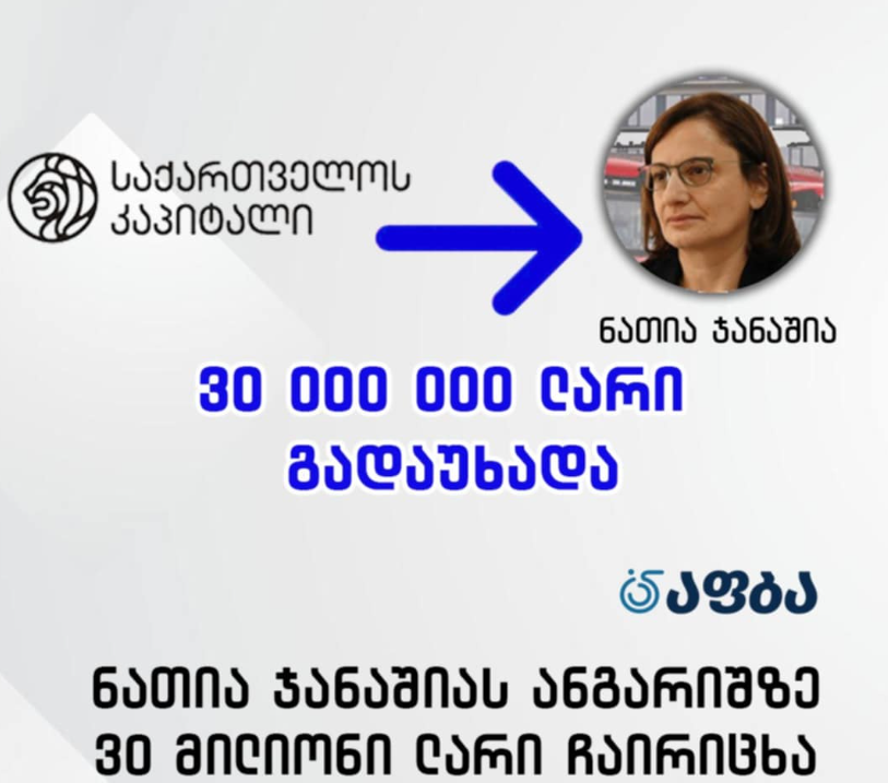ნათია ჯანაშიას ანგარიშზე 30 მილიონი ლარი ჩაირიცხა – აფბა