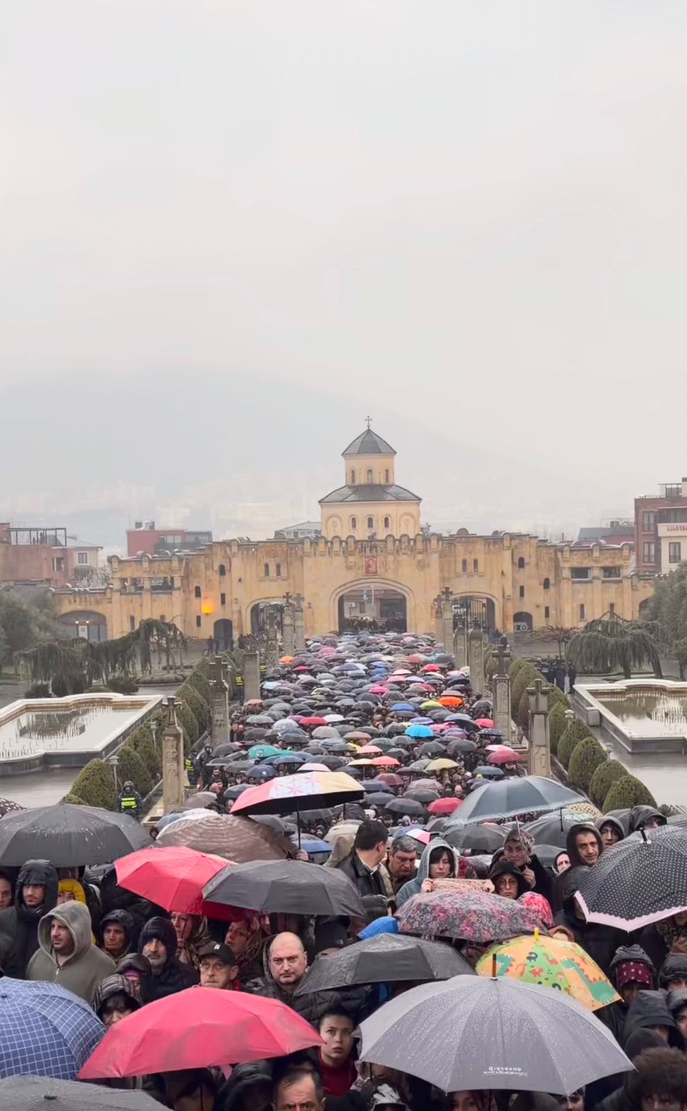 ჩემი 76 წლის დედიკო დილით ადრე ქოლგით ხელში აუყვა აღმართს სამების ტაძრისაკენ… მალე იღლება, დიდხანს დგომა უჭირს… მადლობა იმ კეთილ ადამიანებს, ვინც მის გვერდით იდგა – ერთმა ქოლგა გამომართვა და მეორე ხელკავით მომეხმარა ნელ-ნელა კიბეებზე ასვლაში, არ მიმატოვესო სამწუხაროა, რომ მე შორს ვარ საქართველოდან… ნეტა, მეც მანდ წვიმაში ვმდგარიყავი.