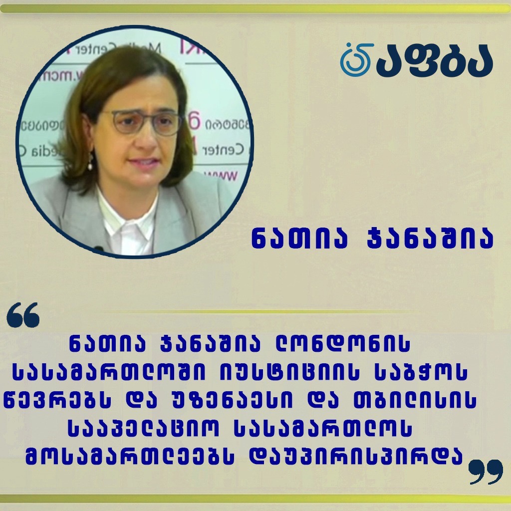 “ნათია ჯანაშია ლონდონის სასამართლოში იუსტიციის საბჭოს წევრებს, ასევე უზენაესი და თბილისის სააპელაციო სასამართლოს მოსამართლეებს დაუპირისპირდა” – აფბა
