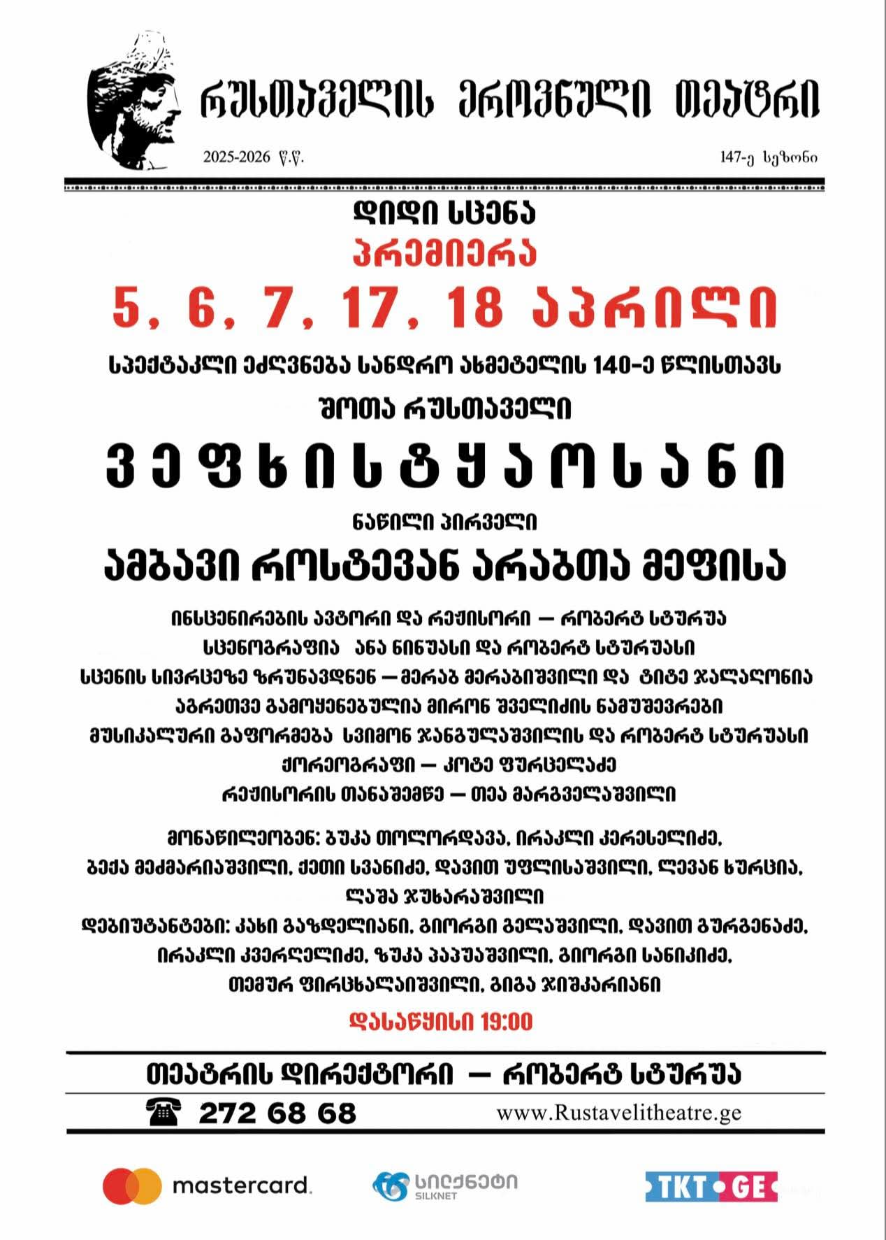 შოთა რუსთაველის ,,ვეფხისტყაოსნის’ პრემიერა რუსთაველის თეატრში