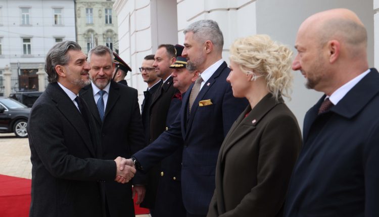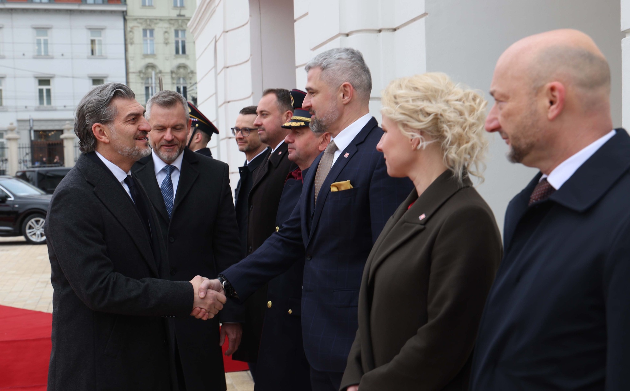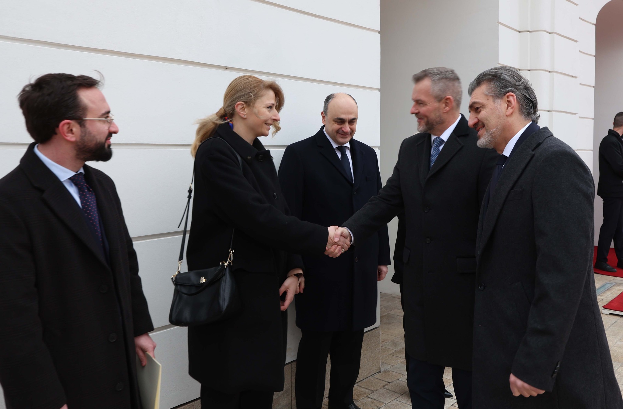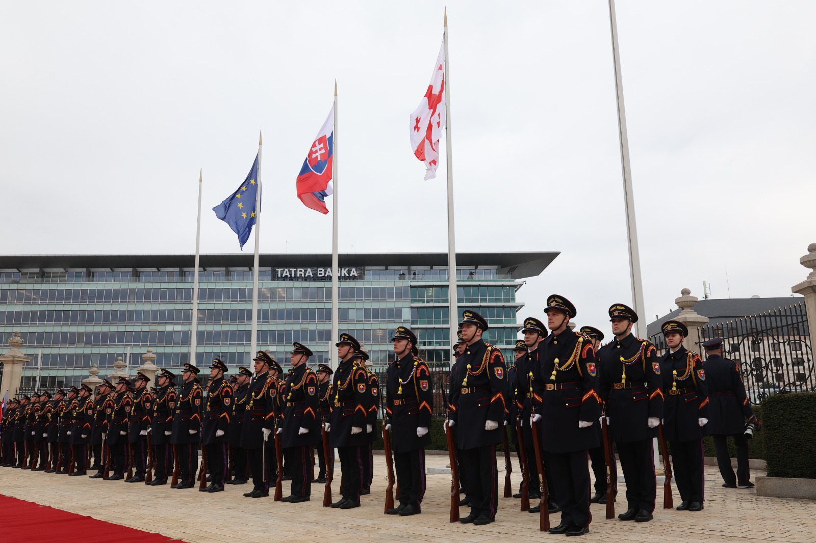 სლოვაკეთის პრეზიდენტის სასახლეში საქართველოს პრეზიდენტის მიხეილ ყაველაშვილის დახვედრის ოფიციალური ცერემონია გაიმართა.