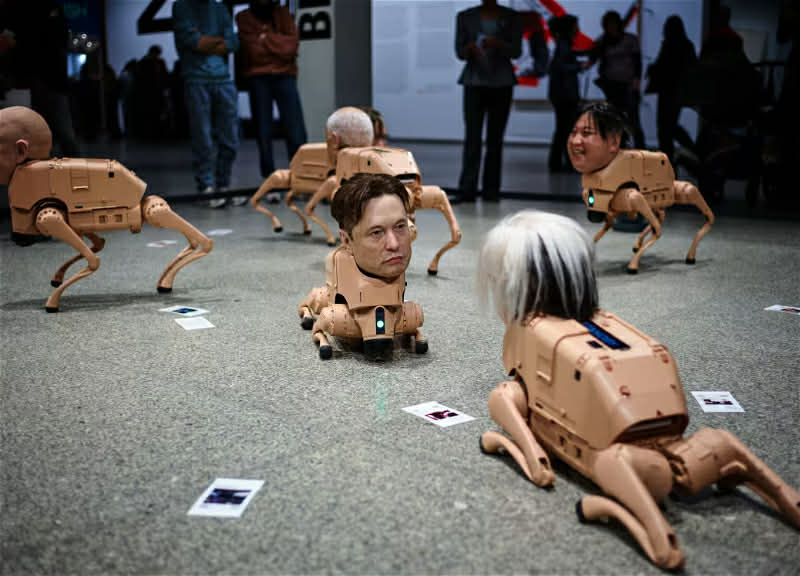გამოფენაზე წარმოდგენილია ჰიპერრეალისტური სილიკონის თავების მქონე რობოტი ძაღლები, რომლებიც შექმნილია ცნობილი მსოფლიო ფიგურების, მათ შორის ილონ მასკის, მარკ ცუკერბერგის, ჯეფ ბეზოსის, ენდი უორჰოლის და პაბლო პიკასოს მსგავსებით.