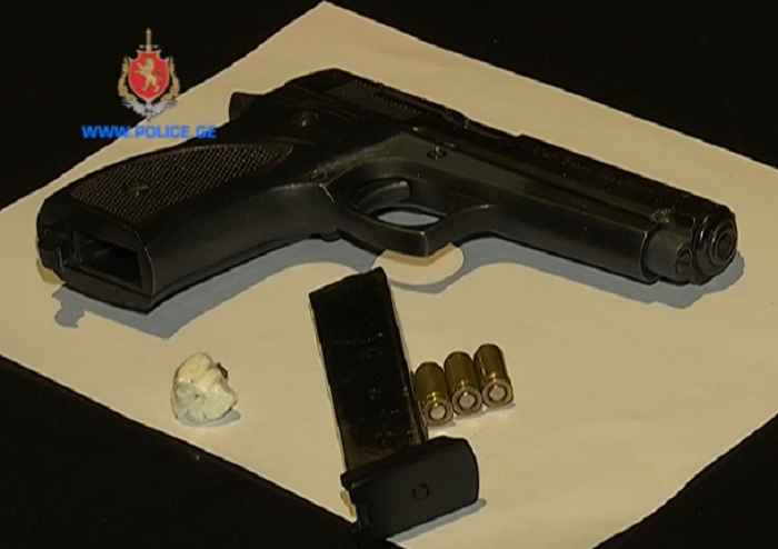 სამართალდამცველებმა დაკავებულის კუთვნილი ავტომანქანის ჩხრეკისას “გოლდ სთარ 2002”-ის მოდელის პისტოლეტი, სამი ვაზნა და ნარკოტიკული საშუალების სამი აბი ამოიღეს, რომელიც, ექსპერტიზის დასკვნით, 0,0311 გრამ ბუპრენორფინს შეიცავს. ამოღებული იარაღი და საბრძოლო მასალა სასროლად ვარგისია.