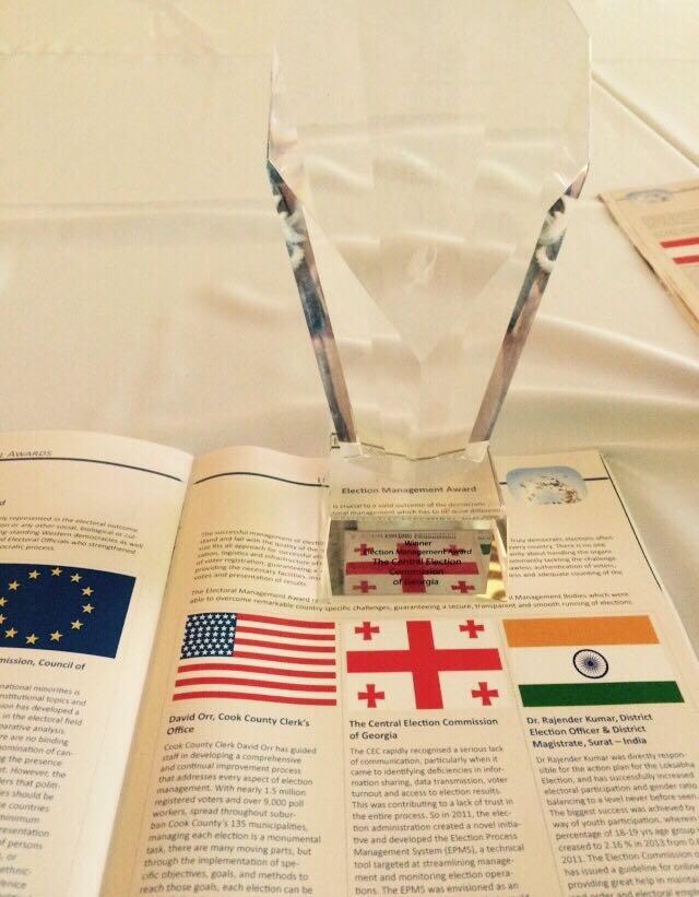 საქართველოს საარჩევნო ადმინისტრაციამ არჩევნების მართვის ნომინაციაში გაიმარჯვა და „საერთაშორისო საარჩევნო ჯილდოს“ მფლობელი გახდა.