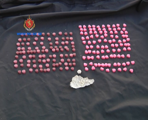 შს სამინისტროს ცნობით, სამართალდამცველებმა, დაკავებულის პირადი ჩხრეკისას, 201 აბი ე.წ. „ექსტაზი“ ამოიღეს, რომელიც ექსპერტიზის დასკვნით, 60,1192 გრ მდმა-ს (3,4-მეთილენდიოქსიმეტამფეტამინს) შეიცავს. ასევე ამოღებულია ნარკოტიკული საშუალება „სუბოქსინის“ 1 აბი და აბის ნატეხები, რომელიც 0,0180 გრ ბუპრენორფინს შეიცავს.