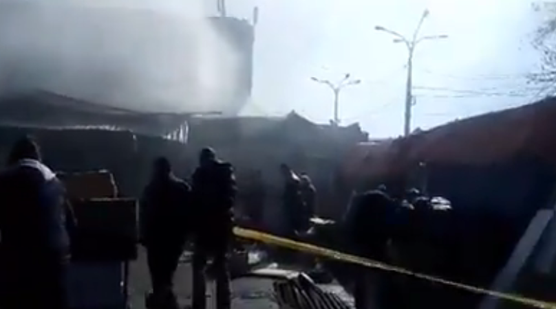 “ბავშვთა სამყაროს” გვერდით მდებარე ბაზრობის ნაწილი ახლაც იწვის (ვიდეო)