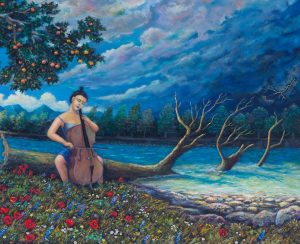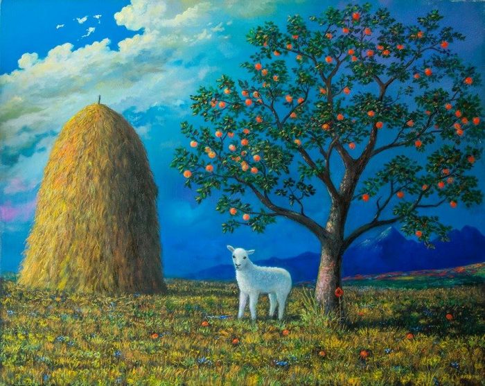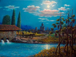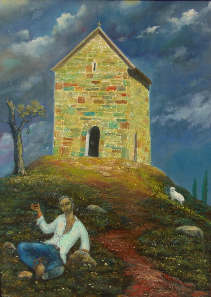 – მთვარის შუქით განათებული მინდორი, ყვავილები და ხე 1995 წელს გადავშალე, უდაბნოდ ვაქციე და ქრისტე გამოვსახე ქვაზე ჩამომჯდარი. ეს ნახატი – „ქრისტე უდაბნოში“ მთელი გულით და სულით შევასრულე და უსაყვარლესია ჩემთვის. მაცხოვარს მარჯვენა ფეხი დამალული აქვს, ხოლო ხელი გაუშლელი… დღესაც არ ვიცი, რატომ შევცვალე ნახატი, ეტყობა წინასწარმეტყველებასავით იყო, რომელიც 12 წლის მერე, 2007 წელს ასრულდა, როცა მე ინსულტი დამემართა და მარჯვენა ხელი და ფეხი წამერთვა.