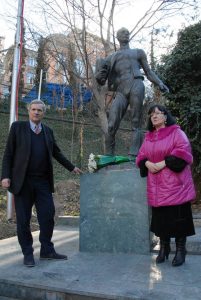 შეკრებილმა საზოგადოებამ პატივი მიაგო კონფლიქტის ზონაში დაღუპულ ჟურნალისტთა ხსოვნას და “მზიურის” ეზოში მდებარე საშა იოსელიანის ძეგლი ყვავილებით შეამკო.