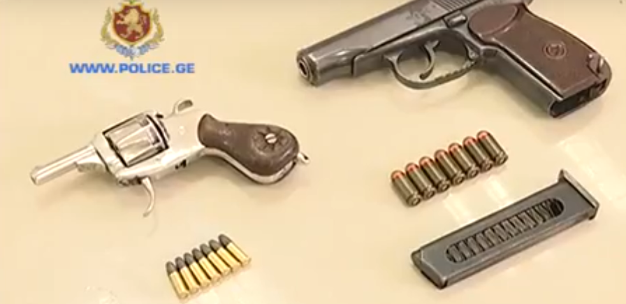 შს სამინისტროს ცნობით,სამართალდამცველებმა, დაკავებულის საცხოვრებელი სახლის ჩხრეკისას, 2 არარეგისტრირებული ცეცხლსასროლი იარაღი – კუსტარული წესით დამზადებული რევოლვერი, მაკაროვის კონსტრუქციის პისტოლეტი და 14 საბრძოლო ვაზნა ამოიღეს.