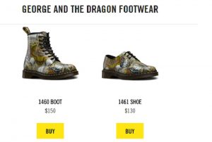 ფეხსაცმლის და ტანსაცმლის მწარმოებელმა ბრიტანულმა ბრენდმა Dr. Martens-მა, წმინდა გიორგის და გველეშაპის გამოსახულებით, ფეხსაცმლის, ტანსაცმლისა და აქსესუარების ხაზი შექმნა.