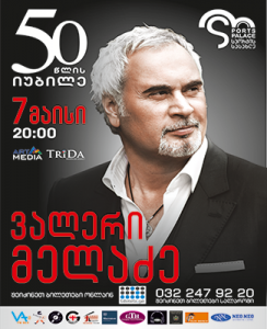 7 მაისს, თბილისის სპორტის სასახლეში და 9 მაისს, ბათუმის სახელმწიფო მუსიკალურ ცენტრში მისულ მსმენელს ნამდვილად ელის სასიამოვნო საღამო. ასე რომ, თუ ჯერ კიდევ არ გაქვთ გადაწყვეტილი და დაგეგმილი ეს კონკრეტული დღეები, დროა, შეიძინოთ ბილეთები და მოემზადოთ ყველასთვის ცნობილ მომღერალთან – ვალერი მელაძესათან შესახვედრად.