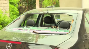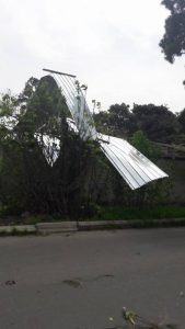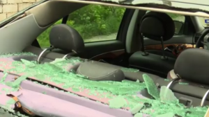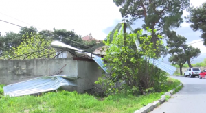 ბათუმის ქუჩის N 23-ში ახდილი თუნუქის სახურავის ნაწილი ეზოში ავტომობილს დაეცა და უკანა საქარე მინა ჩაამსხვრია.