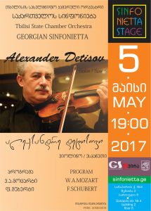 5 მაისს, 19:00 საათზე, „სინფონიეტა სთეიჯიზე“ (სანაპიროს ქ. № 4, შენობა 2, სართული 8) თბილისის სახელმწიფო კამერული ორკესტრის – „საქართველოს სინფონიეტას“ და ესპანეთში მოღვაწე მევიოლინის, ალექსანდრე დეტისოვის კონცერტი გაიმართება.
