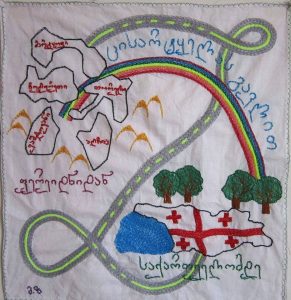 -„ფერეიდნიდან ცისარტყელას გავლით საქართველომდე“ მოქარგვის იდეა ფერეიდნიდან დაბრუნებისას ავტობუსში გამიჩნდა, როცა ჯერ ირანის უდაბნო გამოვიარეთ, შემდეგ კი საქართველოს ამწვანებული წალკოტი… გეცოდინებათ ფერეიდნელების ლეგენდა, რომლის მიხედვითაც თუ ცისარტყელის ქვეშ გაივლი საქართველოში მოხვდები… მეც ის გზა მოვქარგე, რომელიც ფერეიდანში იწყება და ცისარტყელის გავლით საქართველოში მთავრდება…