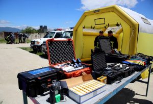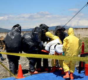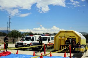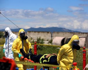 ღონისძიების დასასრულს, სააგენტოს მეხანძრე-მაშველებმა ჩაატარეს სიმულაციური ვარჯიში: ქიმიურ ინციდენტზე რეაგირება, დაზარალებულის ნანგრევებიდან გამოყვანა და სიმაღლიდან დაშვება.