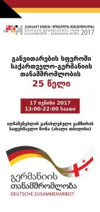 17 ივნისს გერმანიის საელჩო და განვითარების სფეროში მოღვაწე გერმანული ორგანიზაციები, თბილისის მერიის მხარდაჭერით, ერთად აღნიშნავენ საქართველოსა და გერმანიას შორის განვითარების სფეროში არსებული თანამშრომლობის 25 წლის იუბილეს.