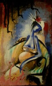 მის მხატვრობაში ჭარბობს შინდისფერი და შავი, დაბინდული ფერები, რომელსაც ემოცია და სევდა, მისტიკა მოაქვს…