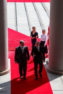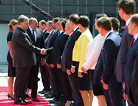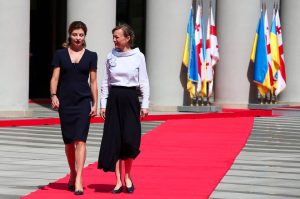 ოფიციალური დახვედრის ცერემონიაში საქართველოს პირველი ლედის მაკა ჩიჩუა და უკრაინის პირველი ლედიც მონაწილეობდნენ.