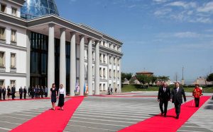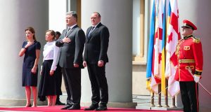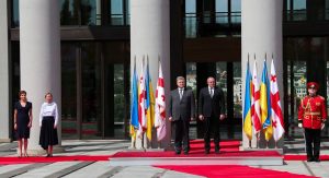 უკრაინის პრეზიდენტისა და პირველი ლედის სახელმწიფო ვიზიტი საქართველოში პრეზიდენტის სასახლეში დახვედრის ოფიციალური ცერემონიით დაიწყო.