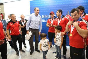 გამარჯვებულ სპორტსმენ პოლიციელებს შინაგან საქმეთა მინისტრის მოადგილე, დავით ვარდიაშვილი, შსს-ს სხვადასხვა დეპარტამენტის ხელმძღვანელები, სამინისტროს თანამშრომლები და ოჯახის წევრები თბილისის საერთაშორისო აეროპორტში დახვდნენ და წარმატება მიულოცეს.