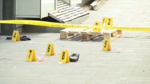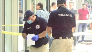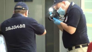ვაკეში, “პიქსელის” შენობასთან, სადაც ქმარმა ცოლი დაჭრა შემდეგ კი ყელი გამოიჭრა ექსპერტ კრიმინალისტები მუშაობენ და ტერიტორია ყვითელი ლენტით არის შემოსაზღვრული.