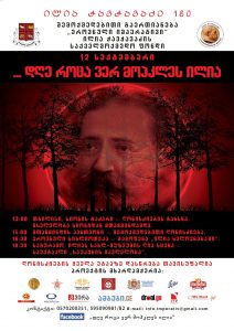 15:00 – მხატვრულ-ლიტერატურული კომპოზიცია – მთაწმინდის პანთეონი – ილიას საფლავთან გაიმართება პერფორმანსი ილიას შემოქმედებისა და მის შესახებ პოეტური ნაწარმოებების მიხედვით. დადგმაში მონაწილეოებას მიიღებენ ქართული თეატრის სხვადასხვა თაობის მსახიობები;
