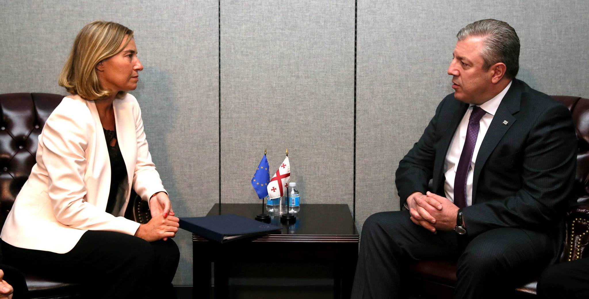 პრემიერ-მინისტრის პრესსამსახურის ცნობით, შეხვედრაზე, რომელიც გაეროს გენერალური ასამბლეის 72-ე სესიის ფარგლებში, გაეროს შტაბბინაში გაიმართა, მთავარი თემები საქართველო-ევროკავშირის ურთიერთობები, ქვეყანაში მიმდინარე რეფორმები და საქართველოს ოკუპირებულ ტერიტორიებზე არსებული ვითარება იყო. საუბარი შეეხო საქართველოს მიერ მიღწეულ პროგრესს და რეფორმებს, რომლებიც, ქვეყნის განვითარებასთან ერთად, ორიენტირებულია საქართველოს ევროკავშირში უფრო სწრაფი ინტეგრაციის ხელშეწყობაზე. შეხვედრისას, ყურადღება დაეთმო საქართველოს ოკუპირებულ ტერიტორიებზე არსებულ ვითარებას. ევროკავშირის უმაღლესმა წარმომადგენელმა საქართველოს ტერიტორიული მთლიანობისა და სუვერენიტეტისადმი ევროკავშირის მტკიცე მხარდაჭერა კიდევ ერთხელ დაადასტურა. ფედერიკა მოგერინიმ აღნიშნა, რომ საქართველო იყო ერთ-ერთი მნიშვნელოვანი საკითხი მისი და აშშ-ის ვიცე-პრეზიდენტ მაიკ პენსის შეხვედრაზე, რომელიც დღეს ნიუ-იორკში გაიმართა.