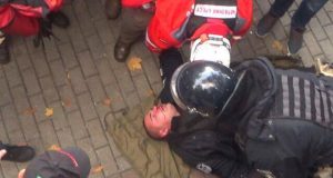 „პოლიციელები და გვარდიელები ყველაფერს აკეთებენ იმისათვის, რომ კონფლიქტის ესკალაცია არ მოხდეს. ამ წუთისთვის როგორც მინიმუმ ერთი დაშავებული გვყავს“,-განაცხადა უკრაინის შსს-ს კომუნიკაციების დირექტორმა უკრაინული ტელეკომპანიის ეთერში. კანონდამრღვევთა პასუხისმგებლობასთან დაკავშირებით საუბრისას, შევჩენკო ამბობს, რომ ყველა ქმედება იქნება გაანალიზებული, დაკვალიფიცირებული და დამნაშავე პირები პასუხისგებაში მიეცემიან.